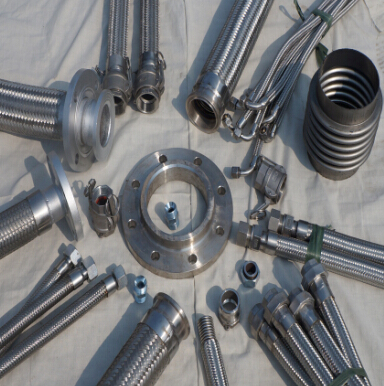 首先通過車床加工一個特制的接頭,將成品金屬軟管與接頭對齊,然后通過氬弧焊機(jī)用不銹鋼絲在外層面上1一2次焊接,最后磨光即可。